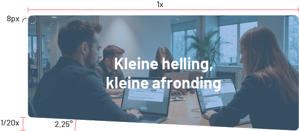 Afgeronde hoeken: ook hiervoor gebruiken we de gouden '8-pt' standaard. Meestal gebruiken we een border-radius van 8px. Welke je gebruikt, hangt af van de grootte van het frame (groter frame → grotere border-radius).