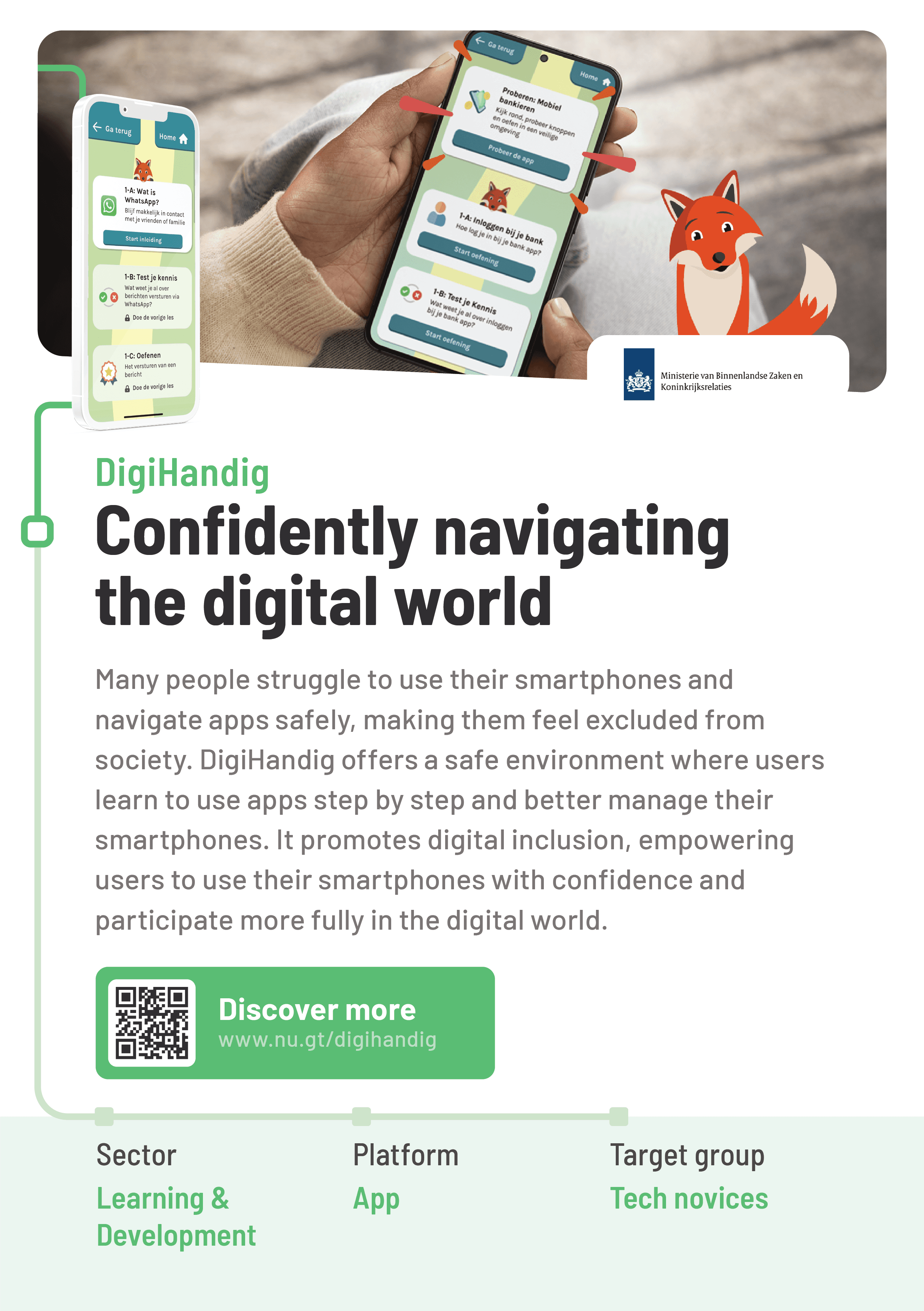 Kleur: gebruik de lichte kleurtinten voor grotere kleurvlakken met teksten. Als iets écht moet opvallen (call to actions zoals QR codes), gebruiken we de primaire kleuren.